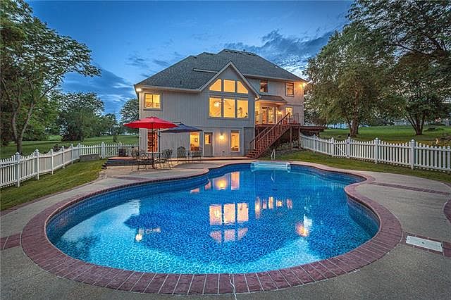 This 1.5 Story home boasts 5 Bedrooms & 4.5 Bathrooms. The Main Level Master Bedroom offers vaulted ceilings, renovated bathroom, and large walk-in closet. Main Level Laundry located just off the kitchen. Kitchen has beautiful cabinetry and double-sided fireplace visible from dining and living room. Head upstairs for spacious bedrooms and great closets! The Lower Level is finished with an additional 6th conforming bedroom with walkout, built-ins, and 600sf of suspended garage space for storage, storm shelter, workshop - the options are endless. Walkout to the back patio to the in-ground pool, fully fenced for safety. This little slice of Heaven has it all! Situated on 9.59+/- Acres, on blacktop roads to long concrete driveway with mature trees leading to the home, Large shop 32x36 with 12' doors, and In-Ground Pool. The fruit trees are tucked behind the shop and along the tree-line. Take a peek into the woods and enjoy the peaceful sounds of nature and creek that runs through the property. There's plenty of wildlife to enjoy watching year round too.