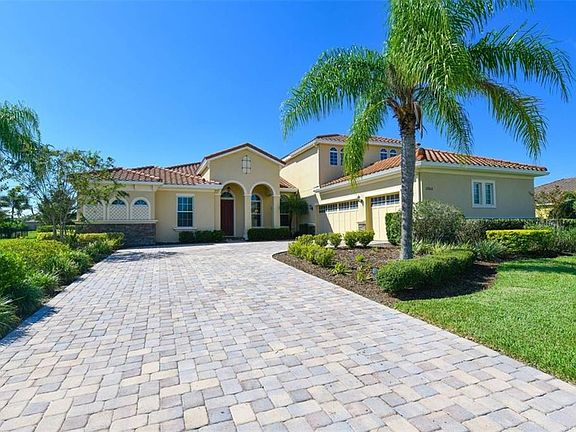 The best value in Rye Wilderness! Why buy new construction on a picked-over interior lot when you can own this beautiful move-in ready home w/premium lake views & pool for a much lower price? Large 4-bed, 4-full bath, luxury home w/3-car garage, separate office, & upstairs bonus room on an oversized half acre waterfront lot. The master suite is spacious w/views of the lake & pool, walk-in closets, & luxurious bathroom w/separate shower, dual sinks, & garden tub. The open kitchen w/center island, built-in oven & microwave, cooktop, breakfast bar, & separate eat-in area overlooks an expansive family room. A bright & open floorplan encourages indoor/outdoor living w/sliding doors in the family room, living room, & master bedroom. Upstairs is a huge bonus room & full bath that can be a 5th bedroom or playroom. The oversized lanai & huge pool deck are covered w/beautiful travertine tile & feature a family-sized saltwater pool & raised spa w/gas heat, LED lighting, & pebble-tech interior. The house was refreshed in 2018 with a new kitchen in trending colors (new solid-wood white cabinets, new granite, new stainless-steel appliances, & new tile backsplash), new grey-tone carpet in bedrooms and upstairs bonus room, new light grey interior paint in entire house, & power-washed exterior, roof, driveway, and pool terrace. Rye Wilderness is districted to top A rated schools, has no CDD, & has low HOA fees. Fences allowed. Amenities include 2 dog parks, soccer field, basketball court, playground, & a private pavilion. For more information or to schedule a showing call the listing agent at (941) 444-0436 or email info@thesrqduo.com.