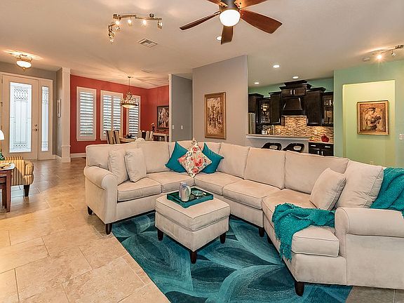 • Interior Features: Ceiling Fans(s), Eating Space In Kitchen, High Ceiling(s), Master Bedroom Downstairs, Open Floorplan, Split Bedroom, Stone Counters, Walk-In Closet(s), Solid Wood Cabinets, Thermostat, Kitchen/Family Room Combo, Window Treatments, Tray Ceiling(s)