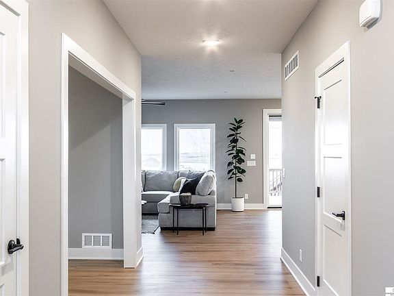Model Home Not For Sale. This beautiful home is loaded with amazing finishes and features plus a great open floor plan in the popular Bennington School District with a Stunning Lake View. Upon entering the home you're welcomed with a 2-story entry, large windows surrounding the stairwell that adds beautiful natural light, LVP Floors, flex room, wonderful kitchen with amble counter space, oversize kitchen island, and a walk-in panty. The 2nd floor features 4 bedrooms, including an expansive primary bedroom with a spoiling tiled walk-in shower and a large laundry room. Larger windows are throughout the home to show the amazing views of the lake from the primary suite, living room and kitchen area. Enjoy your time out on the covered deck with no back neighbors. Close to Bennington Schools, walking trails and park.