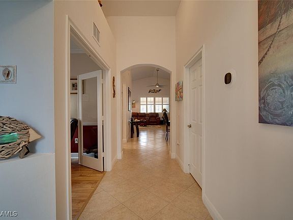 Discover an incredible opportunity to own a home in the sought-after Catalina Isles community! This meticulously maintained custom built 2-bed, 2-bath (+ den) gem, cherished by its Original Owner, offers both charm and modern comforts. From the moment you step through the front door, you'll feel the warmth and welcoming ambiance of this home. The bright and open kitchen, featuring granite countertops and GE stainless steel appliances, seamlessly flows into the family room, where you’re greeted by breathtaking lake views through the extended covered lanai. This outdoor oasis, complete with a luxurious hot tub, is perfect for relaxation or hosting guests. There is plenty of room if you want to add a private pool. Inside, the spacious formal living room boasts soaring volume ceilings,plantation shutters, bose surround system creating a grand yet cozy space ideal for both entertaining and unwinding. The whole home is equipped with accordian hurricane shutters, providing peace of mind during storm season. Simplesafe alarm system on all windows and doors. Led lighting above and under all kitchen cabinets. Also, has a brand new washing machine. Catalina Isles is conveniently situated off the Winkler Corridor, placing you just minutes from beautiful beaches (ft.myers and Sanibel), top-tier shopping, dining, and medical facilities. Residents also enjoy a variety of amenities, including a community pool, playground, and fitness center. No damage or flooding from recent hurricanes. Plus, lawn maintenance is included in the HOA, ensuring hassle-free living. Don't miss your chance to make this exceptional property your new FURNISHED home—Seller is very motivated!! schedule your appointment today!