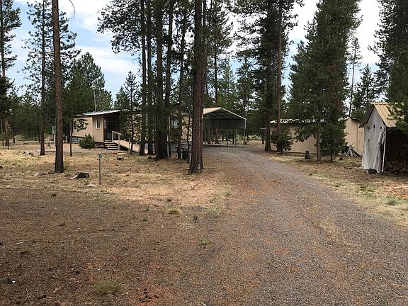 Back on Market, no fault of property or seller. This cute home just needs a new owner...it's in a great location and comes with a steel carport, storage sheds and wood shed. Room for shop or green house...lots of opportunity. Would make a great rental property. Quiet, corner lot close to town, La Pine State Park and Little Deschutes River. All the fishing, skiing, summer and winter sports you enjoy are minutes away. This easy care, neat and tidy home is move in ready. Stove and Refrigerator stay. Concrete septic tank installed about 2003, new well was installed about 2000. Hot water heater replaced 3 - 4 yrs ago. Bedroom and bathroom on each end of house with living room and kitchen in the center. Home is an estate and is sold as is. It has been moved once.