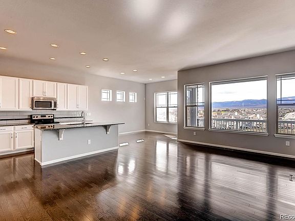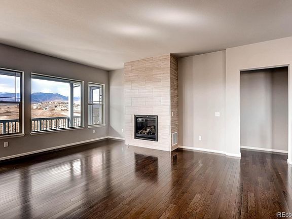Enjoy the views of this modern, move-in ready ranch style home with unbeatable 180 degree unobstructed views of the mountains! When you first enter your future home, you will be comforted by light from windows framing the mountain range. This stunning ranch home features a large walkout basement that has endless possibilities, spacious great room with gas fireplace, formal dining room perfect for entertaining, an extended covered deck and an open kitchen layout with stainless steel appliances, granite slab countertops with Dal Modern Dimensions Desert Gray backsplash and hardwood flooring throughout the majority of the main floor. In the large main floor master you'll be able to admire the views right from your bed! The spacious main suite has a large walk-in closet perfectly located with easy access to your laundry room. Your future home also offers a smart security system with cameras, access to open/close garage from your phone, front door camera and smart thermostat that you will be able to control from your phone. Solar panels produce electricity for nearly 100% of the home along with an internal humidifier system. Your HOA will handle lawn mowing and snow removal all year around. Offering a perfect harmony of luxury and affordability, Leyden Rock is set in a beautiful, natural landscape along the Colorado Front Range with vast open space and 17 miles of trails, community pool and clubhouse, exceptional schools and close proximity to Boulder, Golden and downtown Denver.