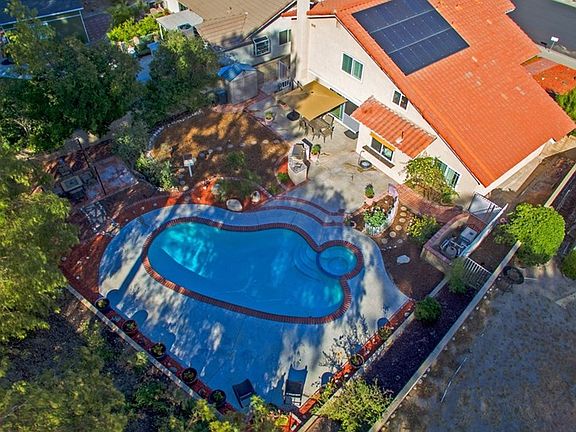 NO HOA ; NO MELLO ROOS ; ENTERTAINERS BACKYARD ; UPGRADED HOME This open floor plan home with soaring vaulted ceilings, shutters, recessed lights cannot be missed! The huge 20,000+ sq ft lot features an entertainers backyard includes a pool, spa, built in BBQ, numerous patio areas and space for a large lawn. The kitchen is gorgeous! The cabinetry has been upgraded, there are granite counters, high end stainless steel appliances and a breakfast bar. The kitchen is open to another dining area with access to the backyard and the family room with an upgraded fireplace and wet bar. There is a formal living and dining room with vaulted ceilings, a full bedroom and bathroom downstairs. The master suite is a retreat, it has a large sitting area well as a large private balcony, walk in closet and master bath with make-up vanity. There are 4 further bedrooms with full bath on the second floor. This home is you own little paradise, you will feel like you are on vacation every day! You are close to award winning schools and easy freeway access.
