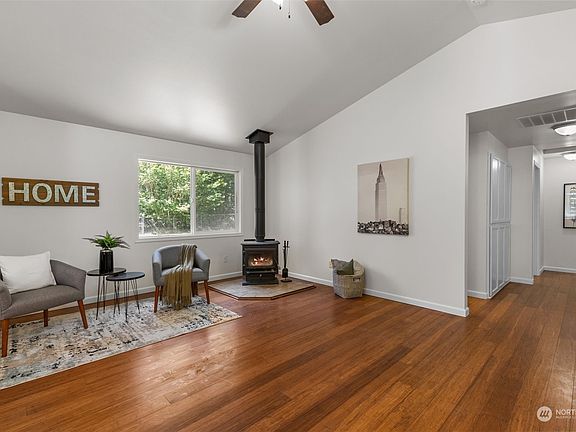 You've come across a fantastic find! Welcome to this 3BD/2BA updated home in Gold Bar. An open concept floor plan greets you with Brazilian bamboo, new carpet, and fresh paint throughout. Spacious living room with fireplace, kitchen with SS appliances and new gas stove, dining area, and family room with fireplace. Primary bedroom with en-suite and 2 additional bedrooms and a bathroom. Enjoy your large fenced backyard for entertaining as well as mature landscaping for privacy. Minutes to SR 2, the Skykomish River, and downtown Gold Bar. If you're looking for tranquility, privacy, or just want to go fishing on the weekends and cook your catch in your backyard, this home is for you!