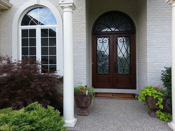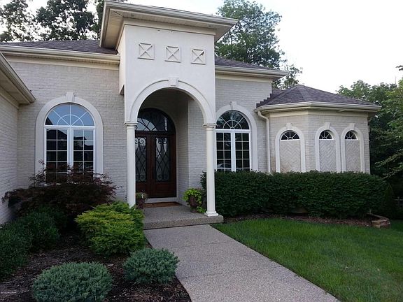 Location! Coastal Mediterranean style walk-out ranch located in a cul-de-sac with front landscaped island and street-light. Exterior and interior has light color decor. Home is on a one-1 acre treed lot, adjacent to the Midland Trail Golf Course at the 18th fairway. Custom built home has TWO MASTER SUITES with TWO LAUNDRY ROOMS. Main level floorplan is a split-bedroom layout which allows the owners a space that is truly private, quite and set up for luxury. Superior place to pamper and unwind. Ceiling Heights are 10'- 0'' + on both levels. The four bedrooms have direct access to a private full-bath. Home also has two powder rooms for guests, one per level of the home. Ceiling heights accentuated with transoms above many full-sized windows on the main and lower level. >>>>