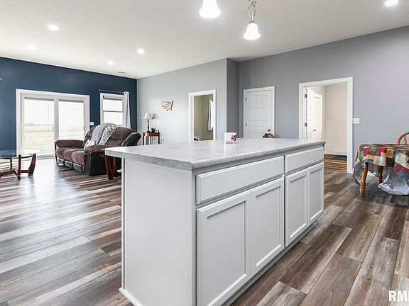 Want a home that lets you do more of what you love? This Mercer County custom-built barndominium blends comfort, efficiency, and outdoor living in a way that few homes can. Situated on 6 sprawling acres of fertile land, this property offers endless opportunities for hobby farming, gardening, or raising animals and playing outdoors. Currently planted with alfalfa hay, the land is ready for your vision—whether it’s a fruit orchard, a pumpkin patch, or a space for horses or miniature cattle. Designed with entertaining family and friends in mind, this home boasts an open-concept floor plan and a spacious living room, perfect for gathering with loved ones. Step outside to the three-sided wraparound porch with a stamped and stained patio—an inviting space for summer nights and outdoor meals. Inside, the large kitchen island is a focal point for both cooking and conversation, while the oversized master suite features a walk-through closet and a luxurious bathroom with a tiled shower and whirlpool tub. Not only is this home designed for living, but also for working and playing. The expansive attached garage is heated, finished, and includes a 3/4 bathroom, offering the ultimate space for projects and storage. Adjacent, a fully insulated shop—finished with white steel—provides additional space for hobbies and equipment. Located just 10 minutes north of Aledo, IL, with blacktop roads all the way to your driveway.