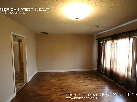 SCHEDULE A SHOWING ONLINE AT: showmojo.com/lh/0f921070a7 Nice house just a couple blocks from downtown Cody! Lawn has in-ground sprinklers and raw water to make irrigation a breeze! Back yard is fully fenced with a walk-through gate on both sides with a large patio and mature apple trees. Detached one-car garage is over-sized with built-in workbench, gas furnace, and storage. There's additional parking space for RV, trailer, or other toys. The home has a small entry space in the back that makes it easy to take off shoes in the weather. Hardwood floors in the large living room and both bedrooms. The kitchen has plenty of cabinet/counter space and room for a dining table. Both bedrooms are large with big closets and two windows. Basement has washer/dryer, utility sink, and plenty of space for a hobby room, storage, etc. Although this is located on a busy street, the noise is barely noticeable when inside the home thanks to the updated windows. Forced air heat, central A/C. Owner will consider a pet. Tenants must maintain their own utility accounts. ___________________ General requirements: All occupants 18+ must complete an application $20 application fee per person Submit a government-issued picture ID Prove combined income of 3x monthly rent To see our current list of rentals or learn more about our screening process, visit the American West Realty and Management website. ___________________ INVESTORS: are you looking for professional property management or an agent that can help you sell or expand your investment portfolio? Contact American West Realty and Management today to learn about our services! Air Conditioning Central Air Ceiling Fan Fencing Fully Fenced Flooring Hardwood Garage Heat Forced Air Kitchen Pantry Kitchen Refrigerator Kitchen Stove / Oven Parking Rv Or Trailer Shop Or Work Space Sprinklers Automatic Utility Black Hills Energy Utility City Of Cody (Water, Electric, Sewer, Trash) Washer/Dryer In Unit
