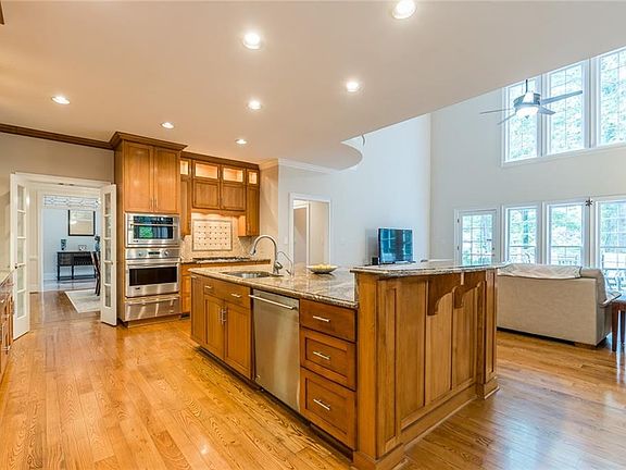 - Kitchen Features: Breakfast Bar, Cabinets Stain, Eat-in Kitchen, Pantry, View to Family Room, Stone Counters, Kitchen Island, Breakfast Room