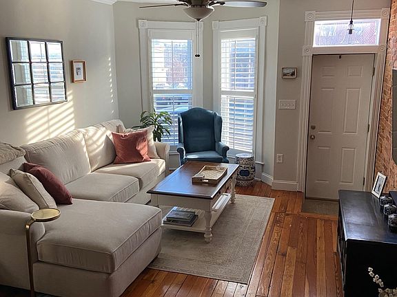 Fully updated 2 bed 2 bath rowhome for rent on beautiful tree lined street just steps from Riverside Park available April 1 (inquire for earlier rental date if needed)! This house has all the charm - exposed brick, original hardwood floors and plantation shutters. The kitchen is perfect for entertaining with a cocktail/coffee bar that features a dual temp beer and wine fridge and island seating that fits two stools. Two spacious bedrooms with plenty of room for desks for a comfortable work from home set up and each have generous sized closets. Second bedroom leads to an oversized roof deck for a great outdoor space with spectacular city views. Back of the house includes off-street TWO car parking. Close to everything! A short walk to Southside Marketplace for all of your shopping needs and just a two minute drive to get on 95 for commuters.