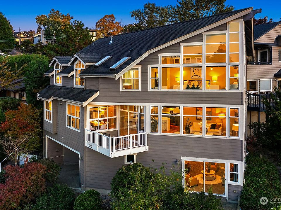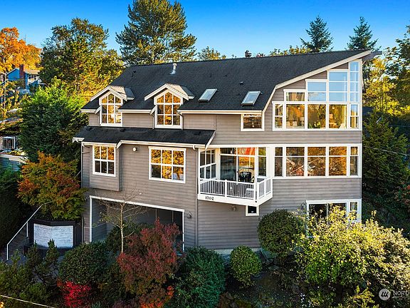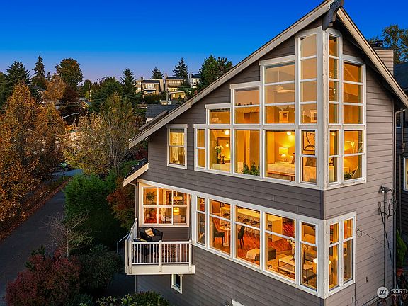 Walls of custom windows capture unobstructed views of the Seattle skyline + Olympic mountains, offering an incomparable energy to this beautifully appointed home. Tons of natural light enhances the contemporary vibe, gleaming hardwoods + warm color palette. The main floor offers an open floorplan, with gas fireplace anchoring the office + dining room, leading to the luxe kitchen + living room. Upstairs, generous primary view suite, 2 additional bedrooms, 2nd full bath, + open landing. Lower level offers generous den perfect for movie night. This coveted address offers an easy lifestyle among rich community surroundings. A short stroll to the beautiful 15 acre Sam Smith park, and easy access to tech hubs, downtown, I-90, I-5 + 520.