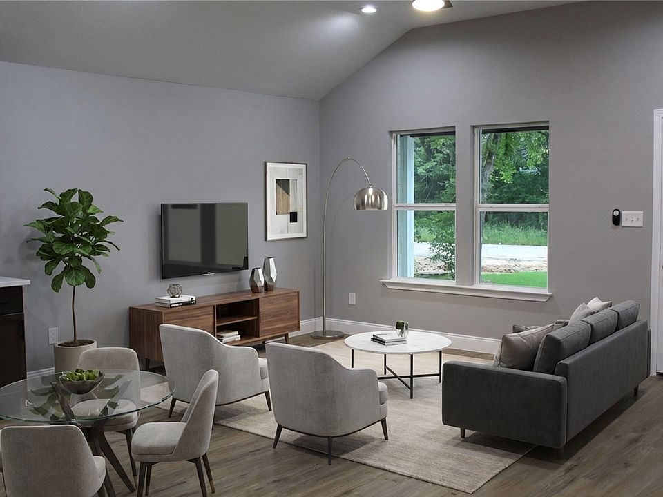 One-story homeTray ceilingsExterior storage roomLarge closetsLarge laundry roomEn-suite master bathCovered porch