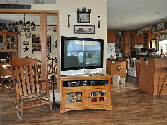 Like New! This well kept open concept three bedroom two bath manufactured home has a spacious county kitchen w/island, dining room ,large living room,newer vinyl plank flooring and drywall interior and most appliances stay! Step outside to relax on the open front porch or patio with stamped concrete that is surrounded by beautiful landscaping.This home also offers a two car attached garage, as well as a 36x40 ft. pole building with 12 ft' ceilings, concrete floor and enclosed shop area that is well insulated for car repair. Home is situated on one acre with private river access!