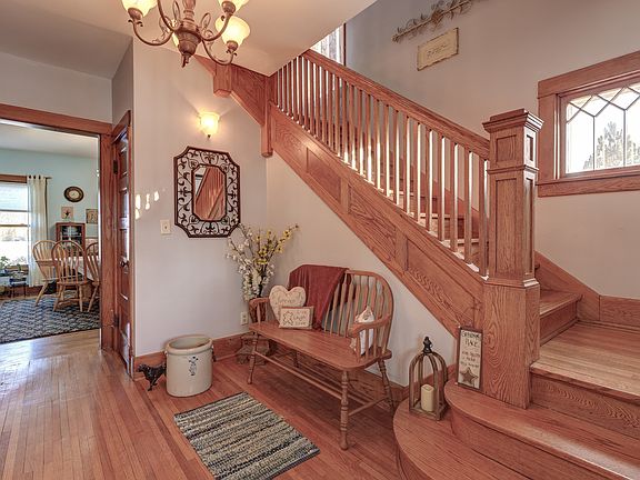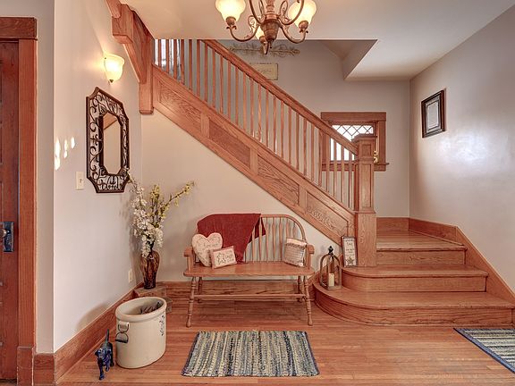 This meticulously maintained home offers character, charm, and an unbeatable location! Situated on a corner lot next to a park, this home welcomes you with an inviting front porch. Inside, you'll find stunning hardwood floors, gorgeous original pocket doors, and a cozy stone gas fireplace in the family room. The bright and inviting eat-in kitchen features ample cabinet space and comes complete with included appliances. Convenient main floor laundry. The upstairs bathroom boasts dual sinks and a relaxing jetted tub, while the enclosed second-floor porch offers a peaceful retreat. A finished walk-up attic provides a spacious fourth bedroom, and the unfinished basement offers ample storage, a workshop area, and exterior access. Don't miss this opportunity to own a home with historic charm, modern conveniences, and an excellent location!