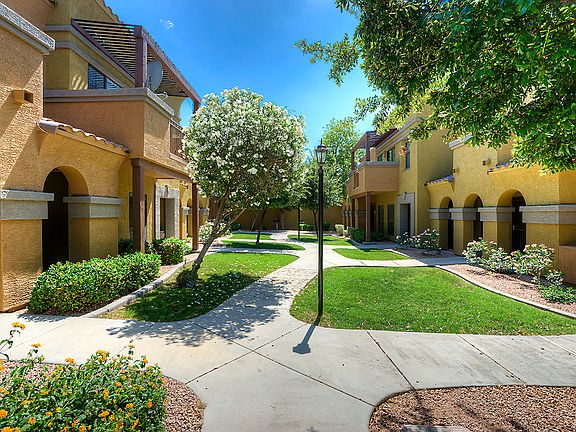 This stunning 3 bedroom 2.5 bath END UNIT will impress you the minute you step inside, with it's bright open floor plan. The townhouse is highlighted with a spacious kitchen with island/breakfast bar, three large bedrooms with walk-in closets in the master and second bedrooms, two full bathrooms with double vanity upstairs, balcony off master bedroom, nice powder room down stairs and 9' ceilings. Additional features include oversized 2 car garage, north/south exposure, tons of storage, additional work space upstairs, Charming maintenance free grass courtyard with built in grills, Located near community pool, fridge, washer and dryer included. This beautiful townhouse has it all and just minutes to Phoenix Mountain Preserve, Hwy 51, 101 and I17. This one is a Gem!