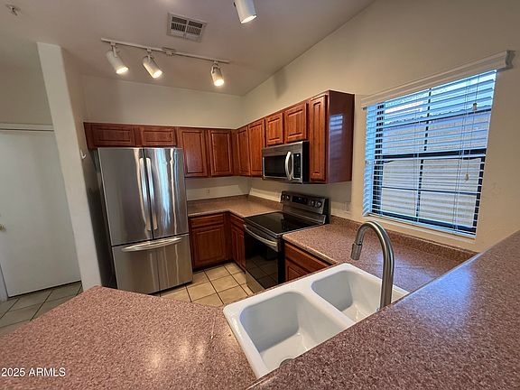 Welcome to this stunning end unit in a gated community featuring a fantastic floorplan and an attached 2-car garage. Enjoy the spacious living with 2 generously sized bedrooms, both with large walk-in closets, and vaulted ceilings that create an open and airy feel. The home boasts 2 master baths for ultimate convenience. The kitchen is equipped with sleek stainless steel appliances, and all appliances, including the washer and dryer, are included for your convenience. Beautiful carpeting flows through the living areas, with tile in the kitchen and bathrooms. Relax on the private balcony off the master bedroom or enjoy the charming front patio with a community grill. This home offers both comfort and style, making it the perfect retreat!
