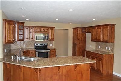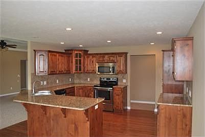 Wonderful home in prestigious Shuyler Ridge subdivision offers spacious living room with fireplace and formal dining, crown molding and chair rail. Rich hardwood floors add warmth and elegance. Kitchen features custom Knotty Alder cabinets, granite countertops, Lazy Susan, French seed glass, Whirlpool stainless steel appliances, tile backsplash and lots of cabinet space. Laundry room features cabinetry and hanging rod. Master suite includes spacious bedroom with tray ceiling, bath with his and her vanity, large corner jetted tub and 4' walk-in shower. Additional bedrooms are generously sized and offer lots of closet space. Home is energy efficient with 13 SEER A/C unit and 90% efficiency heat. Exterior features include a partially covered patio or deck, and a nice lot. Put this home at the top of your list!