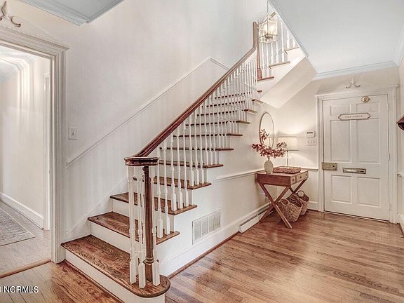 Walking into this stunning home will take your breath away. The large Foyer provides space to welcome your guests as well as those special furniture pieces. The Foyer functions as the center of the home and leads to the kitchen, a huge, updated laundry with lots of cabinets-new tile floor & backsplash. The Sunroom makes a great place to relax & enjoy a cup of coffee while looking through all the many windows at the beautiful view of the backyard gardens with brick walkways & play area. This area makes a wonderful gathering room to entertain as well as many other uses. Feeding a crowd is no problem in the Formal Dining Room. Arched Doorway to the Sunroom and an arched built-in shelving unit charms this beautiful and spacious area which opens to the large Family Room with a gas log fireplace & built-ins flanking the double doors to the Dining Room. Another set of double doors lead to the oversized patio where you can take your entertainment out to enjoy the fresh air. A downstairs bedroom can serve as a 5th bedroom or an office/flex space with built-ins and a second fireplace with gas logs. A Half Bath is located just outside of the bedroom for convenience as well as just off the Foyer for your guests. Wind your way up the gorgeous stairway to the second floor where you'll find the Primary Bedroom with its own Full Bath along with another three bedrooms and one full bath. Outside is a gardener's dream. So many plants, brick walkways, an arbor, fenced yard (combination of PVC, chain link, with lattice privacy panels) including a large garden shed that can be used for storage or potting plants and many other uses. This home has original hardwood flooring in most of the home., brick floor in the Sunroom, tile in the Laundry and Baths. Don't worry...if the power goes out, you'll be saved with your Generac! This home is located about 5 minutes from SJAFB and near restaurants & more. Call today to view this classy home on one of Goldsboro's most beautiful streets.