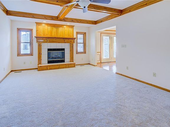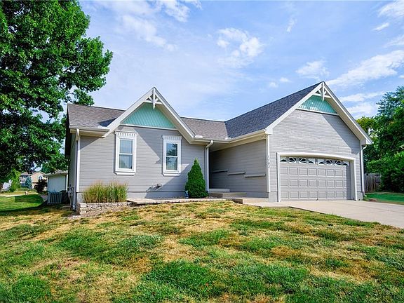 Well-maintained one-level-living ranch home on a quiet cul-de-sac in sought-after Stonecrest in Kearney! New Carpet! Newer Paint! Neutral palette throughout home. Enjoy 3 true bedrooms, 2 baths, and laundry on the main level. The classic wooden beamed living room with gas fireplace opens to an expansive dining room and kitchen. All appliances stay! French doors off the kitchen lead to your newer deck with pergola. Large finished walk-out basement with private bath and HUGE storage area in the utility room. This is the one you've been waiting for! Nothing to do but move in!