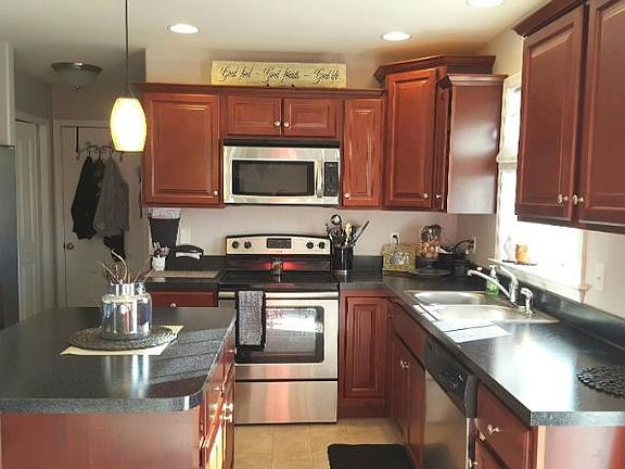 USDA eligible! 100% financing JUST REDUCED!!!!! Elegant home offering Cherry Kitchen cabinets with Stainless steel appliances, open floor plan to Large Family Room , Separate Dining Room with Tray Ceiling, Large Master Suite with Walk in closet and vaulted ceiling, Soaker tub. 3 additional bedrooms all ranging in good size with a jack and jill bathroom. Natural Bolder retaining wall, walk out basement ready to be finished with Radon system already installed and water proofing also completed. 2 car attached garage, rear deck. This home is only 1 year old/ 9 year builders warranty still available. Call today for a private showing!