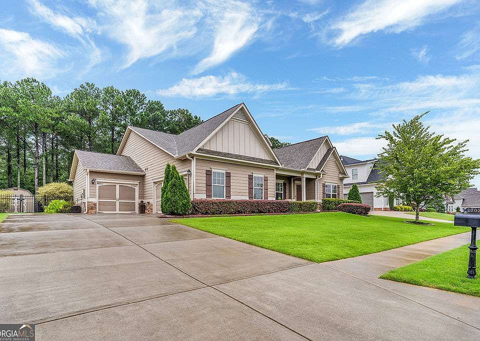 Discover unparalleled comfort and style in this beautifully appointed ranch-style home, nestled in one of Walton County's most desirable neighborhoods. Offering the ease of main-level living, this residence features a luxurious Owner's Suite and thoughtfully designed spaces with high-end finishes throughout. Gleaming hardwood floors welcome you from the foyer, flowing seamlessly to the main living areas. Just across from the dining room, a private two-bedroom suite with two full baths and its own entrance provides the perfect retreat for guests or multi-generational living. The dining room, or flexible living space, allows for elegant entertaining or personalized use. The gourmet kitchen impresses with 42-inch soft-close cabinetry with dovetail drawers, stainless steel appliances, a massive island with breakfast bar, and an inviting eat-in area overlooking the family room with striking coffered ceilings. A screened-in porch extends the living space, offering year-round enjoyment and views of the expansive backyard. The oversized Owner's Retreat features a spa-inspired ensuite with a walk-in shower and a generous walk-in closet. Additional highlights include a whole-house surge protector, Cat 5E data wiring in two rooms, brushed nickel bath fixtures, a vented microwave hood, and soft-close toilets. A 12x20 wired shed with ceiling fan, AC, heat, and finished flooring adds versatile functionality. The five-zone irrigation system services the front, sides, and rear of the property, while a Ring doorbell and keyless entry for both the front door and main garage enhance convenience and security. Highland Creek offers exceptional amenities, including a swimming pool and double tennis courts, all within minutes of shopping, dining, and top-rated schools. This property is a perfect blend of comfort, style, and prime location-schedule your private tour today and discover the best of Highland Creek living.