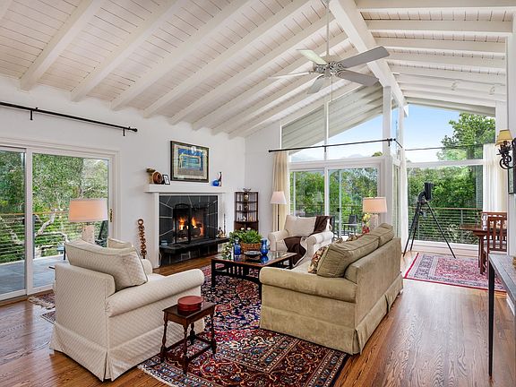 This stunning Upper Riviera home is truly exceptional. The single-story home is perfectly suited for casual and elegant living with a maximum of indoor and outdoor options. The mountain views are spectacular. Perfect for entertaining with the Santa Barbara lifestyle. Dramatic glass sliding doors from the bright living room look out to a fantastically large 1400 foot view deck that is your 2nd outdoor living room. State of the art outdoor entertainment space features seating, bar, barbecue, and outdoor kitchen. The interior gourmet kitchen with cathedral ceilings and designer appliances opens into the family room with eating area. Master bedroom and bath suite includes 2 large closets and spectacular mountain views. Second and third bedrooms share a large bathroom. Off of the living room is an office with built-ins and more views. This light-filled home enjoys a beautifully landscaped acre, including old coastal oaks and redwoods, and provides privacy in a gracious setting. Temperature controlled wine room and extensive storage are in addition to the 2-car garage with extra off-street parking. This home is in pristine condition. Small pets will be considered. Open House Thursday, May 12, 12:45-2PM. Please call or email before coming. Owner pays for Gardener and an allowance for Irrigation water. A shorter lease duration can be negotiated at a different monthly rental rate.