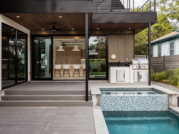 1702 Kerr represents the epitome of contemporary elegance situated in the highly desired Zilker neighborhood of Austin. Showcasing striking modern architecture and a meticulously crafted layout, this residence stands as the ultimate focal point, ideal for both lavish entertaining and opulent day-to-day existence. The lower level features high ceilings, expansive floor-to-ceiling windows, and exquisite white oak hardwood floors. The kitchen fulfills every chefs aspiration, boasting sleek state-of-the-art appliances, richly designed custom wooden cabinetry, and an impressive quartz island/peninsula that will surely capture your admiration. Stepping outside, you'll discover an outdoor living oasis, complete with a tranquil pool and spa, an outdoor kitchen and barbecue area, and a central deck encased in full-height windows that seamlessly merge the indoors with the outdoors.The main-level primary suite offers a secluded sanctuary with lofty ceilings, a spa-inspired bathroom, a commodious walk-in closet, and direct backyard access that promises to transport you to a realm of sheer happiness. On the upper level, three additional bedrooms and full bathrooms await, alongside a versatile space with a wet bar that presents opportunities for relaxation or remote work. This space leads to multiple balconies and a 3rd level rooftop deck providing awe-inspiring views of the Austin skyline.Situated only moments away from Zilker Park, Lady Bird Lake, and an array of dining, shopping, and entertainment selections, this residence truly embodies the essence of urban luxury. Immerse yourself in the pinnacle of sumptuous living with the exceptional 1702 Kerr.
