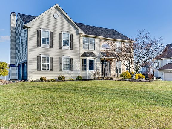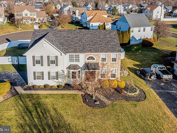 In beautiful Jamison, close to Warwick Community Park, lies the magnificent home at 1702 Lafayette Drive. This charming two-story Colonial sits at the beginning of a cul-de-sac in the Woodfield Estates development. The landscaping is meticulous, even in the Winter. Lush grass surrounds the home and the greenery that blooms in the Spring will fill the front yard. The facade is a vinyl and stone front, giving the home extra character. Entering through the covered front door, admiring the stained glass panels, you'll notice the hardwood flooring that runs throughout most of the first floor. To the left is a bonus room, currently being used as an Office, with a wonderful bow window that allows light to pour in. To the right of the Foyer, we have the Formal Living Room. Complete with crown molding, double windows, and a seamless flow into the Formal Dining Room, where the crown molding continues. Through the hallway, you'll enter the Eat-in Kitchen. Perfect for any chef, this kitchen comes equipped with stainless steel appliances, a gas cooktop oven, a built-in microwave, both recessed and overhead lighting, tiled matching backsplash, quartz countertops, hardwood cabinets for appliance storage, a pantry, and an island with a wine fridge. The 1/2 wall in the eat-in portion of the kitchen overlooks the sunken Family Room. Fully carpeted, the large Family Room is perfect for relaxing with wonderful vaulted ceilings, a gas fireplace to keep you cozy, and windows overlooking your fenced-in Backyard. A half bathroom and a laundry room attached to the Garage complete this floor. Upstairs, we have the Primary bedroom, fully carpeted with a magnificent tray ceiling, a walk-in closet, and a remodeled bathroom with a double sink, tiled floors, a stall shower, and a soaking tub. The other three bedrooms on this floor are also wall-to-wall carpeted with closets and share a remodeled hall bathroom that has a double sink, a tiled tub shower, and a linen closet. The full and finished Basement has gorgeous picture frame wainscoting, engineered floors, and lots of space for a second Family Room. There is also a separate workout room with a large mirror and the continued engineered flooring. Out the French doors from the Kitchen takes you to your backyard. Fully fenced-in, this home comes complete with a inground concrete heated salt water pool (installed in 2019) , a grill and eating area, and tons of green space around it for other activities. New roof 2022 , HVAC 2022 and more! Be sure to view this home before its gone!