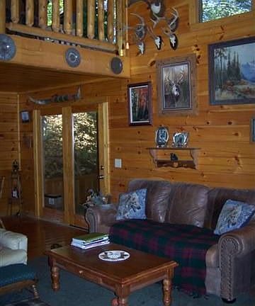 This two bedroom cabin is easy to access between Pigeon Forge and Gatlinburg, in pretty Sky Harbor. It has a peaceful, landscaped flat yard with seasonal water in the front. The driveway is almost flat, with room for several cars. Inside the cabin is all wood, with two bedrooms and baths. The upstairs game area/loft looks down over the living area and outside over the yard. The hot tub is enclosed in a screened room to keep bugs away, and the wrap around porch has room for chairs and tables to enjoy the mountain air. It has not been on rental, but would be very well suited for it, or for remaining a permanent residence.
