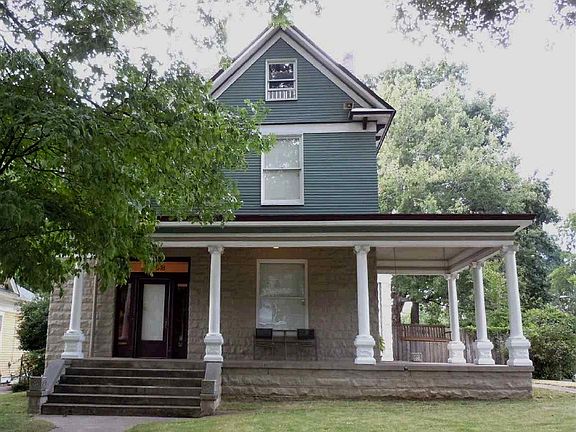 Wonderful historic features, wrap around front porch, wrap around back porch with a new hot tub, beautiful original tile fireplace surround on both fireplaces, pocket doors. Renovated Kitchen with new granite counter tops opening into the Hearth Room. New solid hardwood floors in Hearth Room/Kitchen areas. Walk up attic with space to expand. Large Garage with Spacious Air Conditioned Workshop/Studio with a Bath. You would never have to leave your projects. Garage entry from the well maintained alley. Professional Landscaping, full top of the line sprinkler system, new sod, New flat roof. Best block of Lawrence