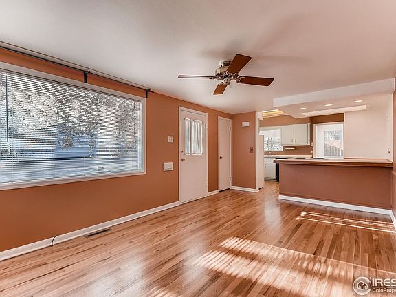 Charming bungalow in sought after Old Town Longmont, with recently refinished hardwood floors, new paint, enclosed backyard. Two bedroom, one bath and open floorplan connecting living room with kitchen. Kitchen has a lot of natural light. Large private fully fenced backyard with flagstone patio and flower beds. Large detached garage. Walking distance to Sunset Golf Course & Sunset Community Pool. See 3D video. This home is a gem!