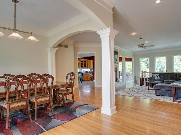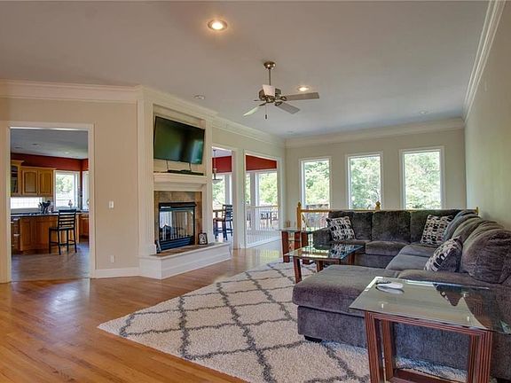 This beautiful home features an open floor plan with 12ft. ceilings. Kitchen has a large walk-in pantry, see thru fireplace, SS appliances, lots of cabinets & storage. Laundry on main level off garage. Grand windows overlook large back yard. Beautiful hardwood floors, Large deck and private patio area for entertaining. You will love Entertaining and watching the game with all your friends & family in the lower level rec room with WET BAR! Has a 5th non-conforming bedroom that you'll be sure to love.
