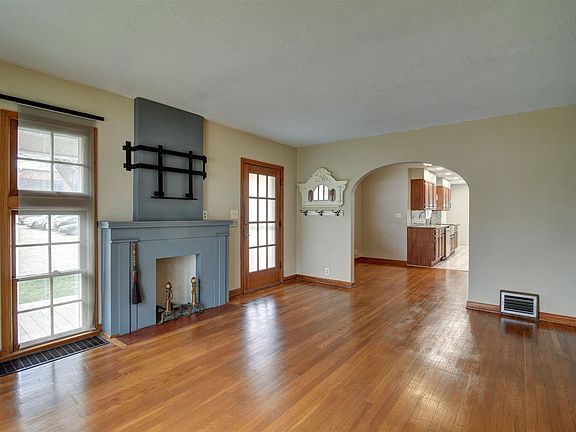 Unique Riverside home on corner lot conveniently across the street from Woodland Elementary School! With 3 BR 1.5 BA 2-Car Detached garage, you will find many updates throughout. Great curb appeal including a covered front porch leading you inside. Gorgeous hardwood floors are found on the main level and in Primary Bedroom. The Living Room sports a decorative Fireplace and barn door shutters on the large window giving it a cozy feel. Large formal Dining Room leads right to the updated kitchen including newer Maple Cabinets, newer granite countertops and tile floors. All newer appliances stay. The truly private primary suite is on the upper level with hardwood floors, a sitting room outside the Master Bedroom, half bath, 2 closets and a bonus room that can be used as a huge walk-in closet or craft room. Two additional Bedrooms and Main Bath are on the main level. The laundry room is located in the basement as well as a big Family Room. Covered patio, Limestone wall, Wood privacy fence, mature trees, sprinkler system, well, sidewalks. Low maintenance vinyl siding. All kitchen windows and door are new. New Slider to Patio. Ring doorbell stays. This charming country-like home has an abundance of character! Don't miss out on it!! -- Call to schedule your private showing today!