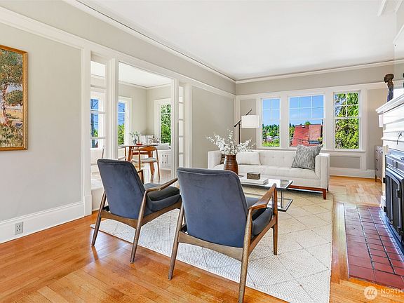 Prepare to be smitten! Formal entry and staircase invite you to this gorgeous Colonial that exudes vintage charm throughout. Award winning kitchen with nook is a great place to start the day or entertain in style. Inviting LR and attached west-facing sun room are reminiscent of a bygone era. Open, luxurious spaces at each turn. 4 BRs plus office up provides room to spread out. Updates include newer roof, sewer, furnace, paint, and more. Sited with presence on an oversized corner lot with SW exposure, it offers privacy, mature landscaping and a tranquil back yard oasis. Located near fab shopping, cafes, markets, parks, desirable schools, UW, U-Vlg, Lt Rail and commuting. Don't miss this rare opportunity - a home to cherish for years to come!