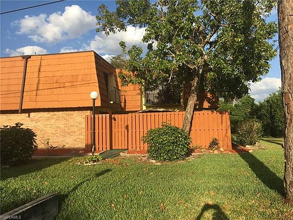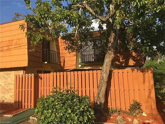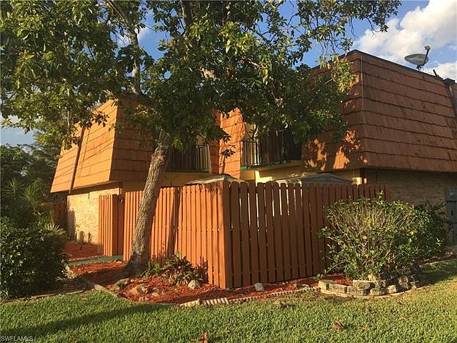 Spacious 2 story 2 bedroom 2 bathroom townhouse set in the perfect location overlooking full grown trees and capturing the evening sunset colors. This great unit has an electric fireplace in the living room, in unit washer and dryer, and a huge kitchen. The bedrooms are big and have wall to wall closets with mirrored doors that give the illusion that room is even larger. Each bedroom has a balcony overlooking a private, fenced and landscaped courtyard complete with shed and giant producing avocado tree. In the heart of South Fort Myers you are minuets away from everything and low HOA fees make this unit the perfect place to call home. Selling as is w/ right to inspect. Pets allowed!