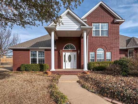** OPEN HOUSE SUNDAY, MAY 18TH 2PM-5PM This wonderful 2 story home is tucked away in a quiet Cul de sac street in the Timbergate Addition, just walking distance from the new Timbergate Park. This spacious home offers 2672 square feet of living space with 4 bedrooms, 3 bathrooms, formal dining room and a 3-car garage. The downstairs features a large living room with a built-in entertainment center, surround sound speakers and a gas fireplace. The bedroom off the living room would be perfect for an office or fourth bedroom. The living room opens into a large kitchen featured with granite countertops, new stainless steel kitchen sink with a garbage disposal, built-in pantry and plenty of cabinetry for your storage needs. The large laundry room includes its own large vanity and sink. The half bathroom has been updated with a new sink vanity and toilet. The large master bedroom features a built-in entertainment center with a gas fireplace. Enjoy the large jacuzzi tub in the master bathroom. The master bathroom was professionally updated in 2022, updates include new custom tile shower, upper cabinets, granite countertops, sinks, lights and fixtures. Step into the OVERSIZED LARGE CLOSET! The closet has room for all your clothing and includes a built-in drawers and ironing board. Upstairs, you will find two bedrooms and another full bathroom. The upstairs bathroom was professionally updated in 2023. These updates include new custom tile shower, toilet, fixtures and lights. The BONUS room off the bathroom would be perfect for another closet area or changing room. This home has plenty of room and storage for a large or growing family. Including ample parking with an attached 3 car garage. The garage features an in-ground storm shelter, 2 automatic garage doors with keypad. Step outside to a covered patio perfect for entertaining and enjoy the large fenced in backyard. The backyard incudes a storage barn and metal shed. Do you like to decorate for the holidays? This home would be perfect for you! The front of the home features outlets on the eaves of the home for your decorating needs. These outlets are connected to a timer located in the garage. This home also includes a sprinkler system, two HVAC units, alarm system, central vacuum in the home and garage. Other updates include main HVAC unit replaced in 2018, New Roof 2016, Roof was inspected by Elite Roofing in 2024, New tile flooring downstairs in 2019. Contact Jennifer Wolston, Realtor with Land Pros Real Estate to schedule a viewing. 580-467-4399