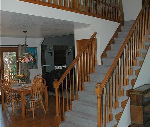 Absolutely beautiful 2 story home with a finished basement on a prime lot in The Woodlands. Features include newly refinished hardwood floors on main level, a vaulted family room with brick fireplace, built-in bookshelves, kitchen has been upgraded with granite counters, formal dining room with custom bayed window provides a great view of mountains and open space. Formal living room on main level. Upper level features 4 total bedrooms, including master bedroom, updated 5 piece master bath with glass block shower & separate tub. Spacious walk-in closet with ELFA shelving. Basement level is finished with a very large / open recreation room, full bath, 5th bedroom (non-conforming as there is no dedicated closet, but could easily be added) would make a great guest room, home office, craft room etc. Additional space is unfinished and set up as a workshop. New furnace & AC installed in 2012. Updated patio door, updated windows throughout this beautiful home. New carpet on first floor and in finished basement. Great Home, Great Lot, Great Views. Convenient to local shopping, recreation, dining & entertainment. This one will go fast !