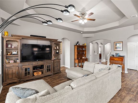 Welcome to this stunning Hogan built 4 bedroom, 3 bathroom home offering 2,574 square feet of thoughtfully designed living space. From the inviting arched entryway to the open concept layout, this two story home combines elegance and functionality. The primary suite is conveniently located downstairs, along with a second bedroom and a private office, while upstairs features a spacious second living area perfect for a game room, media room, or kids retreat and two additional rooms. Recent updates include a newer HVAC system, fresh interior paint, carpet, a newer water heater, and a whole house water filtration system and pressure pump, giving you peace of mind and move in readiness.