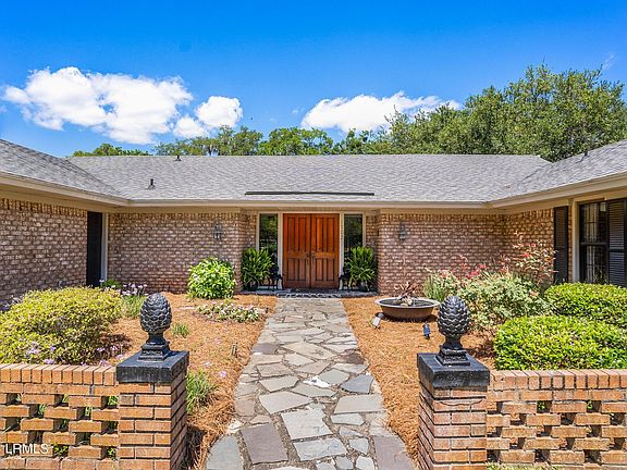 Interior Photos Soon. Location, Location!!! Deepwater, City of Beaufort, Western Exposure, No HOA, No Flood Insurance, Quick Stroll to the Spanish Moss Trail. This sprawling, great bones, brick ranch with 4BR/3.5BA and 3429sf has not been available for purchase in over 30 years. Situated on a beautifully landscaped .61 acre, the high bluff property boasts a private deepwater dock with lift, fiberglass sea wall, and salt water pool with fully screened enclosure for easy maintenance. The MBR suite was relocated to the rear of the home by Powell Brothers approximately 2 years ago to capture the river views and included creation of a new Master bath and custom closet.