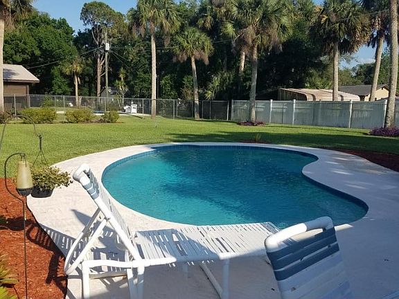 Good taste fills this delightful 3 bedroom, 2 bath home on corner lot with metal roof. Modern kitchen with all appliances including garbage disposal and trash compactor. Large living area with crown molding and tile floors. Master suite is generously sized with upgraded master bath. Invite your friends over for a splash in the pool which is surrounded by lush landscaping. Property is fenced and has a separate building for pool supplies and hurricane shutters. Alarm system and separate well for watering grass & plants