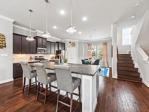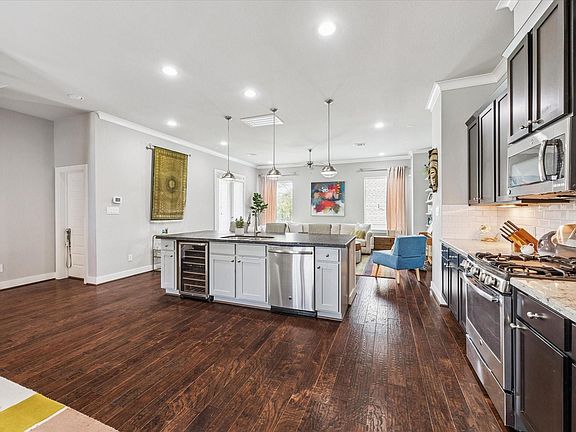 Located in the heart of the Arts District. Just steps from the hike/bike trail w/ direct access to Downtown, the Heights & beyond! This 3 bed, 3.5 bath home features tall ceilings, hardwood floors & generously sized rooms throughout. The kitchen boasts a large island w/ breakfast bar, wine fridge & walk-in pantry. The dining area drenched in natural light, while the adjoining living room opens directly to a balcony for seamless indoor–outdoor living. The spacious primary suite offers room for a king bed & sitting area. The ensuite bath is a true retreat w/ a soaking tub, glass enclosed shower, dual vanities, & walk-in closet. A secondary bedroom w/ ensuite bath & laundry complete the 3rd floor. The 1st floor includes a versatile room w/ full bath, perfect for a home office or 3rd bedroom. Enjoy a gated front courtyard, 2-car garage & extra driveway parking. Located just minutes from Downtown and Eleanor Tinsley Park, this location puts the very best of Houston right at your doorstep.