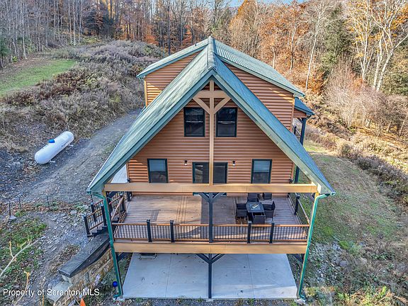 Awesome find! Wait till you see this newly custom-built home on 11 acres nestled in a wooded setting for privacy. This vinyl log sided home has so many wonderful features for you to see and the grounds are just as great for your private entertaining or peaceful enjoyment and hunting if you like.A must see, this home offers the ability to enjoy as is or change and expand with your ideas. Very spacious 2C heated basement garage , utility room, tons of storage space and walkout access to concrete patio area. Main floor contains 2 bedrooms, bathroom, custom kitchen w/concrete counters, hickory cabinets, island all open to cathedral ceiling in living area (or dining). Just off the kitchen is a door leading out to the trex covered deck that is absolutely ready for you to entertain with BBQ's or relax, a wonderful outdoor space! On your way up to the 2nd floor you will notice the custom made & delivered from Tennessee, the log banisters and railings taking you to the loft (or TV room) . Off the loft is your primary suite w/beautiful bathroom w/Walkin shower and your closet w/laundry room. ATV, hike, hunt, relax! Minutes from Rt81, 17 minutes from Elk Mtn.
