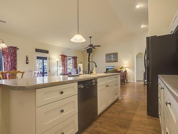 Single Level Home on .50 acre+/- 3 Bedrooms, 2 Bathrooms, 3 Car garage. Large Covered Back Deck. Granite Island, Large Walk-in Pantry, All Appliances included, Ceiling Fans, Wood Stove, Wood Laminate Flooring. Wood stove, custom cabinets, vaulted ceilings and many more upgrades. RV's OK