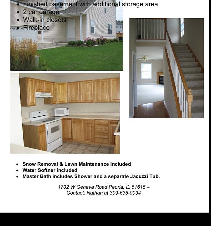 Dunlap School District / Equipped with Appliances including Washer and Dryer & Microwave / Master Bath includes Shower and a separate Jacuzzi Tub / Finished Basement with additional storage area / Walk-in Closets / Fireplace / Snow Removal & Lawn Maintenance Included / Water Softner Included / 2 Car Garage Property has recently been refinished! Owner pays for Lawn Maintenance, Snow Removal, and Water Softner