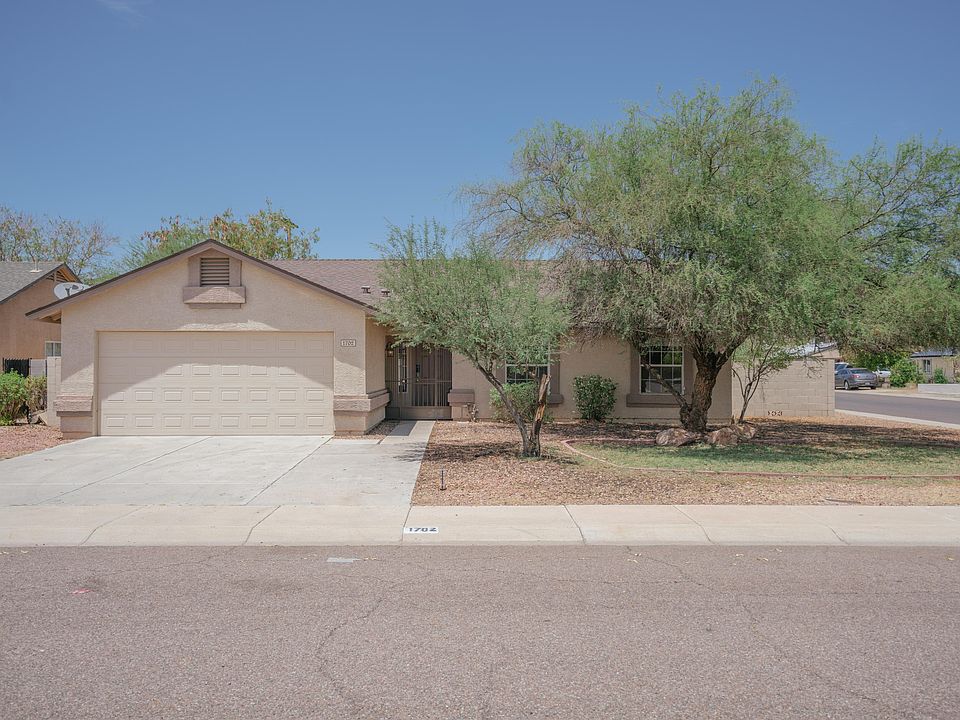 Positioned on a corner lot, this one-story home is complete with fresh interior paint, new carpet, a new water heater, and a new microwave, all installed in July 2017! Travel up the driveway, flanked by a mature grown tree and grassy area. Inside, find a living room leading back to the formal dining room. Towards the back of the home, the kitchen sports a bar top counter and a casual dining area, with a sliding glass door which leads to the covered patio. The back yard facilitates easy-upkeep with gravel and a grassy area. Enjoy a walk-in closet in the Master suite, as well as dual sinks and a shower tub. Short drive to CVS, casual dining options, and Fry's. Accessible via I-17. Home comes with a 30-day satisfaction guarantee and one-year premium warranty. Terms and conditions apply.