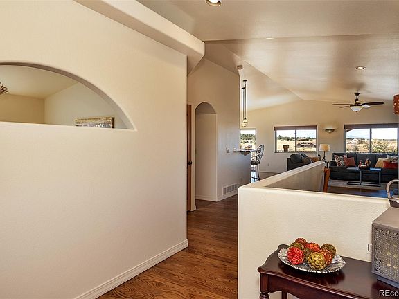 Welcome home to this beautiful custom Rancher on 5 acres. This wonderful house was built with extensive attention to detail resulting in quality workmanship. Right from the moment you walk through the beautifully crafted front door into the bright entry way, you will continue to be impressed. A huge dining room suitable for any occasion is located at the front of the house; Continue on into the large open living room, with wood burning stove and lots of natural light; Lovely large kitchen with breakfast bar and eating nook, leads out to the expansive covered deck where some breathtaking mountain views await you. Master Bedroom is a peaceful oasis with Peak views and a gorgeous 5 piece bathroom, complete with jetted tub and a walk in closet sure to satisfy most tastes. Finished basement continues to awe with a huge family room; wet bar/kitchen; bedroom; gorgeous bathroom; additional room that could be used for guests or as an office; an array of finished storage space. This peaceful setting which backs to 20 acres of protected open space is going to impress your buyers and check all of their boxes. Conveniently located to Colorado Springs with less than a 30 min commute, and easy access to HWY 83 for those who have to commute North, this gem of a listing will not last long. Buyer to verify square footage.