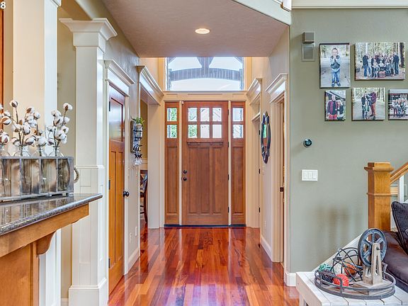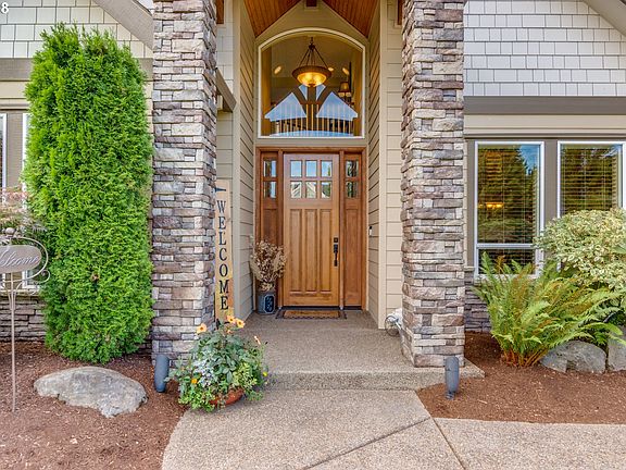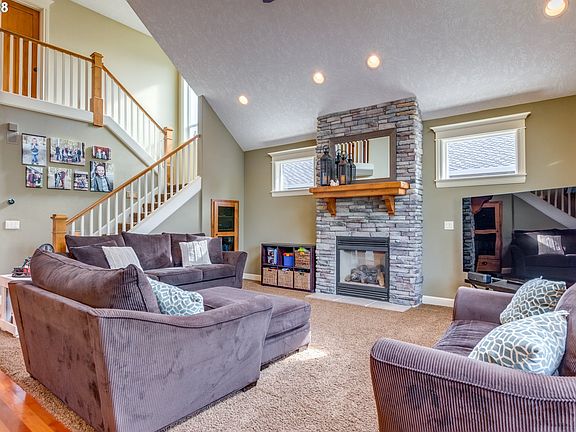 This custom built home offers an open layout, vaulted living room w/ floor to ceiling stone fireplace, a gourmet kitchen w/ slab granite, SS appliances & breakfast bar, master suite on the main w/ jetted tub, office/den, hardwood floors, huge bedrooms, A/C, central vac, 3-car garage, new exterior paint & custom garage door. Private 10,000 SQFT lot w/ fire pit, water feature, sprinkler system, nice views & more! ES-5. [Home Energy Score = 5. HES Report at https://api.greenbuildingregistry.com/report/hes/OR10144675-20180829]