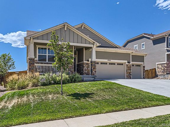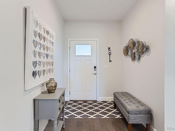 Better than NEW Meritage ranch style home in popular Vista Highlands! Meticulously cared for home, only built in 2020 and still feels and shows like brand new! Open flowing floor plan all on one level with full unfinished basement featuring a rough-in for future bath and high ceilings. The gorgeous kitchen features a large granite slab island, highly-upgraded white cabinets with glass inserts, and upgraded appliances. Gas cooktop and separate oven/wall microwave. The primary bedroom has ensuite bath with expansive walk-in closet and faces west to appreciate the mountain views and beautiful sunsets. Two additional bedrooms PLUS a flex room, which would make an excellent office, workout space, or craft room. Covered front porch plus a covered back patio allows you to enjoy sunrise to sunset. Home backs to open space with mountain views! This Smart Home features programmable lights, thermostat, even a programmable oven! Instant hot water heater. All the bells and whistles!! Great neighborhood playground/park, plus close to grocery, restaurants, and golfing, and easy commute to I-25. It doesn't get better than this. Move right in and start enjoying this beautiful home.
