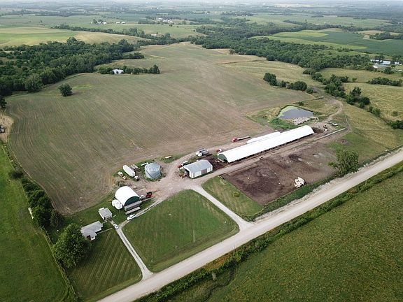 Cattle/Beef Farm, +/-100 acres, approximately 52-55 +/- tillable, remaining acres are grass pasture and 2 nice ponds. Which features a 365' X 48' Hoop Feed Building. The hoop building includes a 12-foot concrete alleyway, 7 separate paddocked lots with crushed limestone under the bed pack, 4 automatic waterers, and curtain vents along the entire north side. 14-foot overhead doors on east and west ends offers easy cleaning and convenient loading/unloading. The building can accommodate 320 head, 4-40head pens and 2-80 head pens, the remaining 45' is a cattle working area. Excellent feed storage is provided in the 45' X 35' Hoop Beef System Commodity Shed. Also, a Sukup 20,000-bushel grain bin with Stir-Ator and dryer, 42 X 63 Morton building used for machinery storage, and a Single family 1100 sq ft 2-bedroom home with new septic system. Many renovations have been done, such as new fencing, continuous pipe fencing with steel post along roadside and paddock areas, excavation, tiling, drainage, some terrace work, additional feeding area with concrete pad/feed bunks, and tree removal for more pasture area. Farm for sale at $995,000