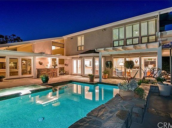 Back on the market because the buyer couldn't perform, this tastefully refurbished, mainland home enjoys peekaboo Ocean views from the master balcony. The classic interior is graced with wainscoting, crown moldings, recessed lighting, new paint, new carpet, solid oak flooring, 3 fireplaces, plantation shutters & new Hunter Douglas blinds. Sumptuously appointed with stainless steel Thermador & Subzero appliances & a large granite peninsula, the bright, gourmet kitchen opens to the generous family room. Originally a 4 bedroom home, the current 3 bedrooms are exceptionally proportioned, all with their own bathrooms & 2 closets each. Replete with Carrera marble & underfloor heating, the master bathroom is particularly palatial as it was the original master bedroom! Another unexpected luxury is a sauna tucked away in one of the bathrooms. With a cleverly-designed, spacious exterior & a single-loaded street, privacy is maximized in the party-perfect patio complete with Pebble Tec saltwater pool, spa, fireplace, fountain, BBQ and bar. This serene mainland neighborhood is perfectly positioned for walking to PCH, shopping & restaurants; the benefits of the Huntington Harbour experience without sacrificing accessibility. Make sure to view the video tour as well!
